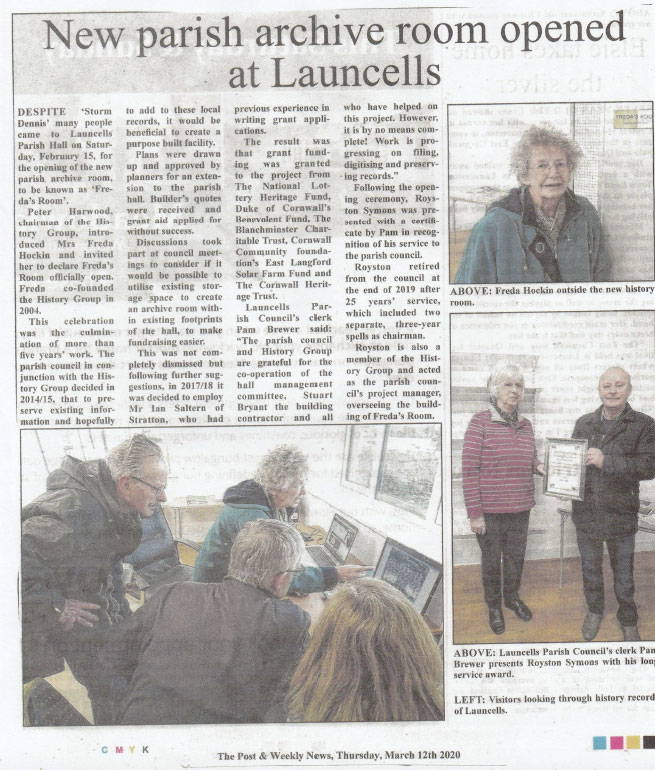 Launcells Parish Council in conjunction with Launcells Local History Group received a grant of £1,500 from Cornwall Heritage Trust.