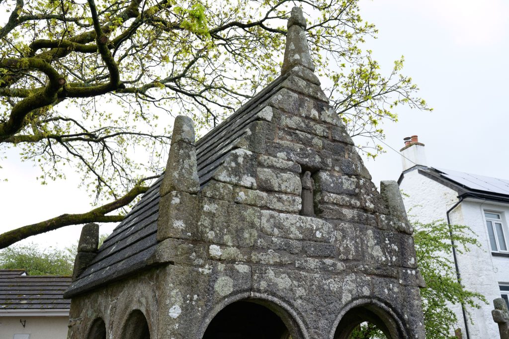 Thought to date from the 15th century, St Cleer’s is the only example of a well house with an open porch-like design in Cornwall. Its pillars, arches and capitals are carved with simple mouldings and patterns which are also unusual in Cornwall at this date.