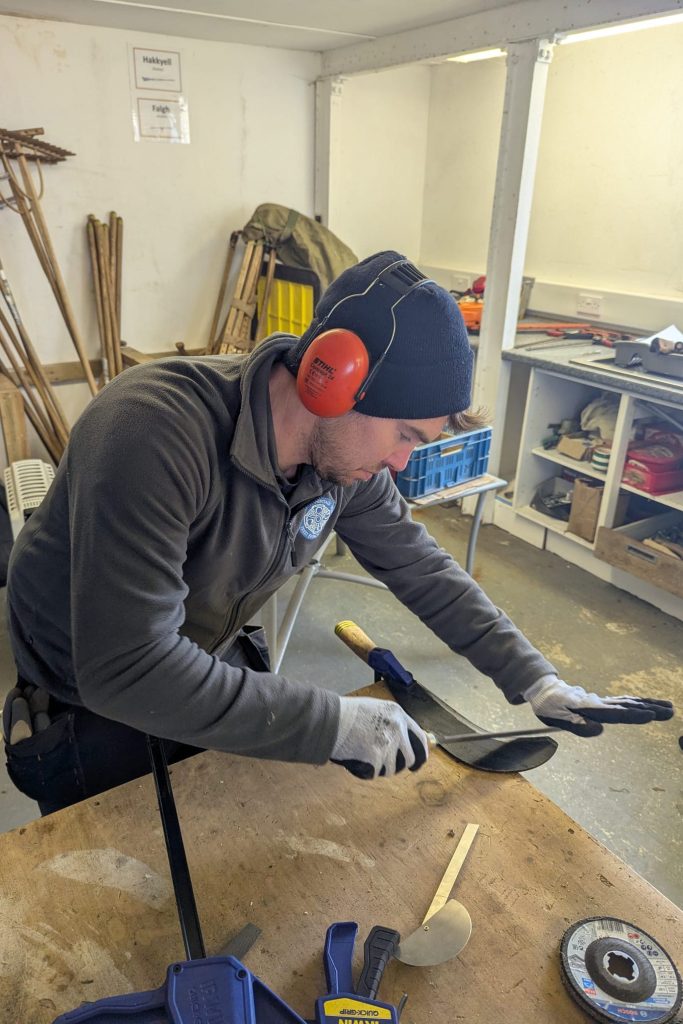 The latest session in our heritage skills training and education project saw participants learn how to sharpen and care for their countryside maintenance tools with Jeremy Weiss, a traditional rural services and training specialist.